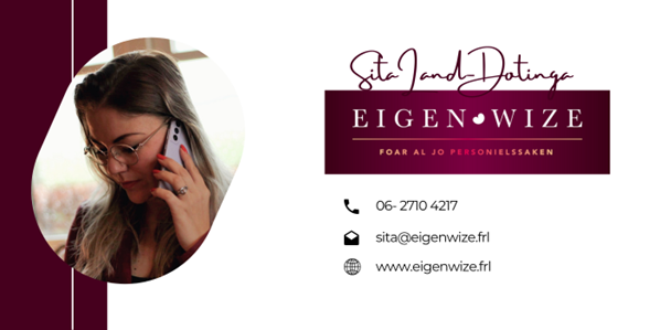 Een Frysksinnich bedrijf. Waarom? Omdat ik ervan overtuigd ben dat het Fries niet alleen een taal is maar ook mijn identiteit weergeeft en dus ook de identiteit en waarden van mijn onderneming. Ik ben nuchter, doortastend en heb een open persoonlijkheid. Dit zijn ook de kernwaarden van Eigen-wize personielssaken; we werken doortastend, zijn betrouwbaar, transparant en hebben een nuchtere blik. Door mijn jarenlange ervaring binnen de uitzendbranche en mijn grote netwerk die ik mocht opbouwen is mijn bereik groot en denk ik met Eigen-wize personielssaken een mooie bijdrage te kunnen leveren.